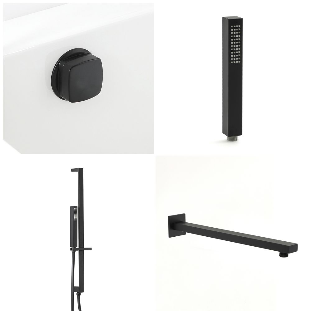 Featuring a matt black finish and square lines, the Milano Preto thermostatic bath and shower set is sure to bring bold, yet sophisticated style to your bathroom. The diverter shower valve, 300mm square shower head, overflow bath filler and riser rail kit with hand shower are included.