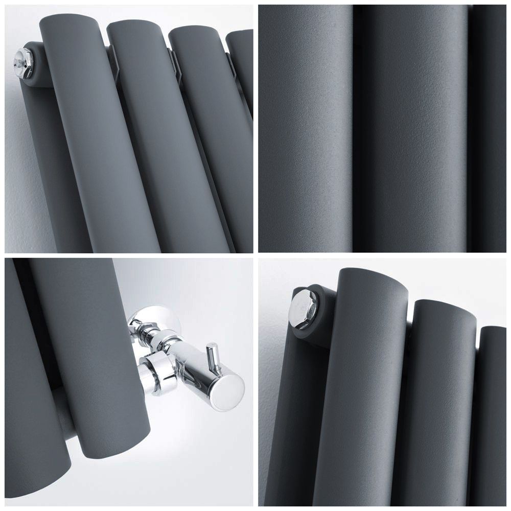 This tall radiator features a space-saving vertical design and stylish oval-shaped panels in a hard-wearing powder coated finish.