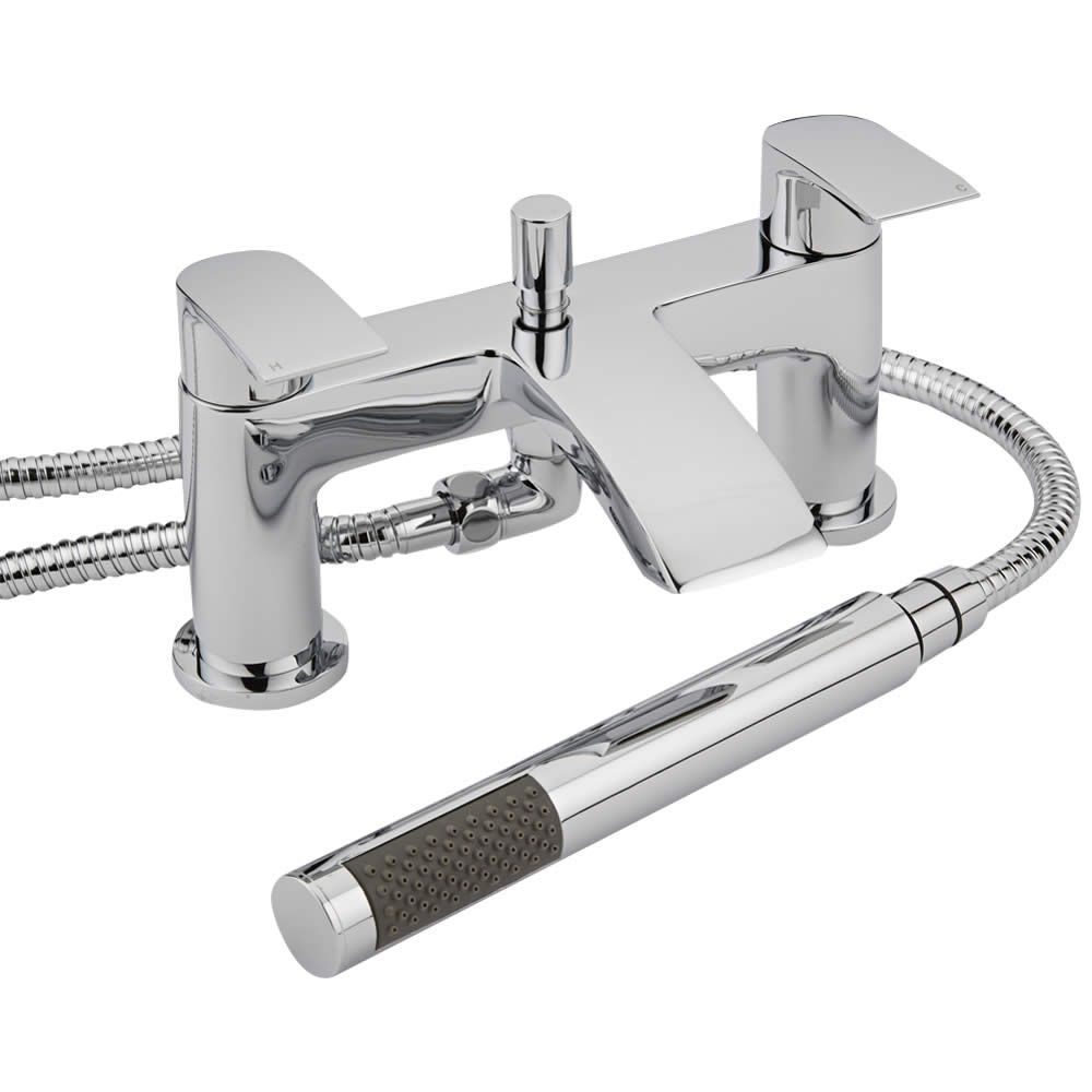 Crafted from solid brass for guaranteed durability, this bathroom tap set features attractive curved lines and a hard-wearing chrome finish that complements any bathroom decor. The taps use lever handles for ease of use and incorporate ceramic disc technology to prevent leaks and drips. The bath mixer tap comes with the hand shower kit and wall bracket.