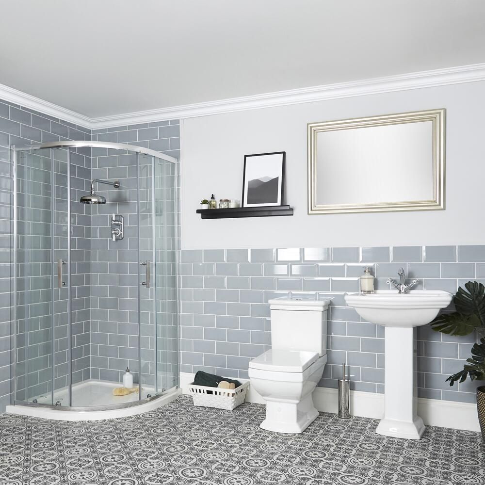 Create a beautiful traditional bathroom and a perfectly coordinated look with the Milano Sandringham shower suite, complete with quadrant enclosure, tray, close coupled toilet and pedestal basin.