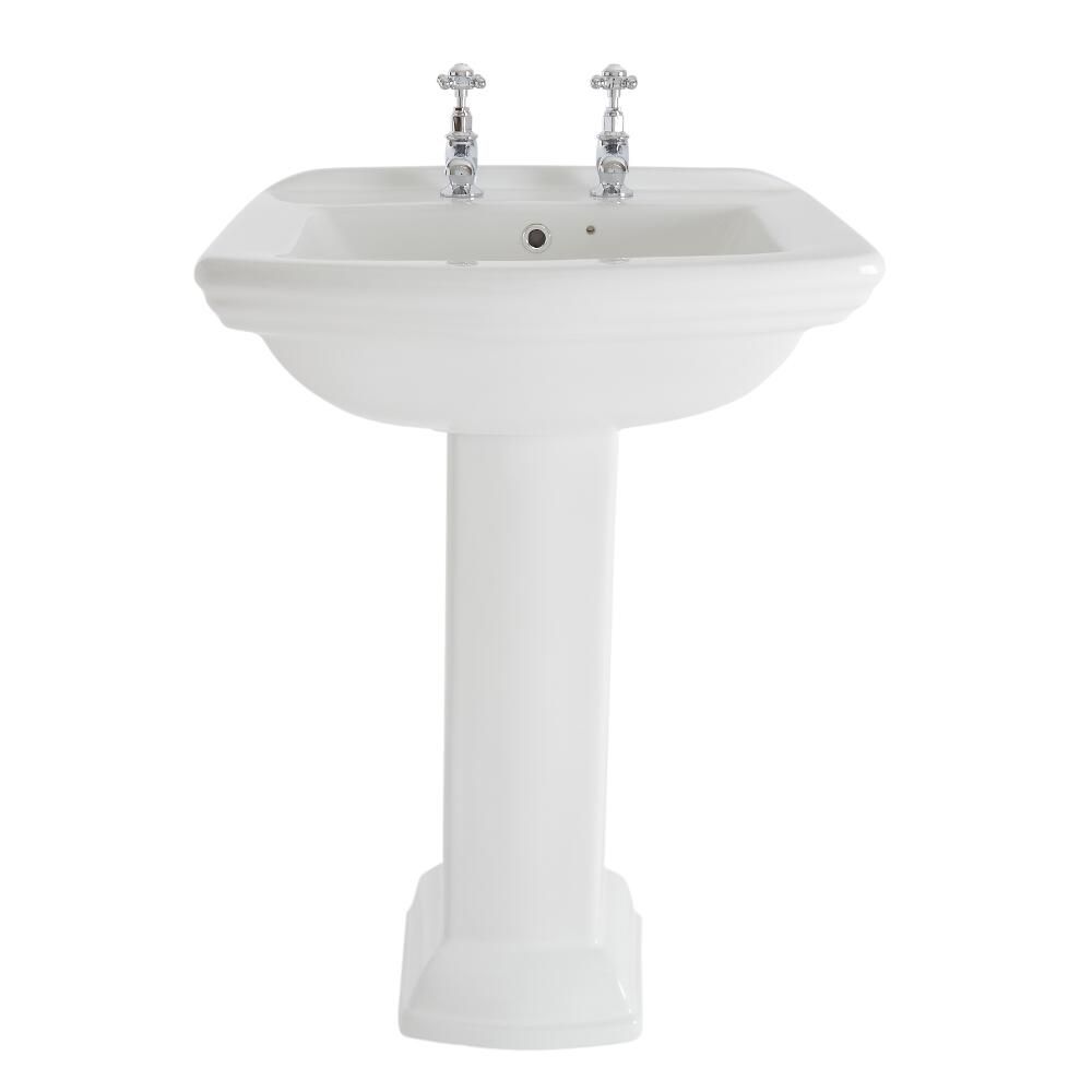Milano Sandringham - Traditional 2 Tap-Hole Basin with Full Pedestal - 605mm