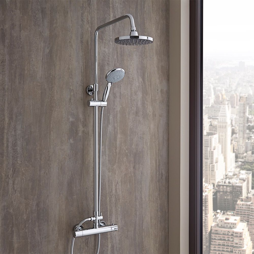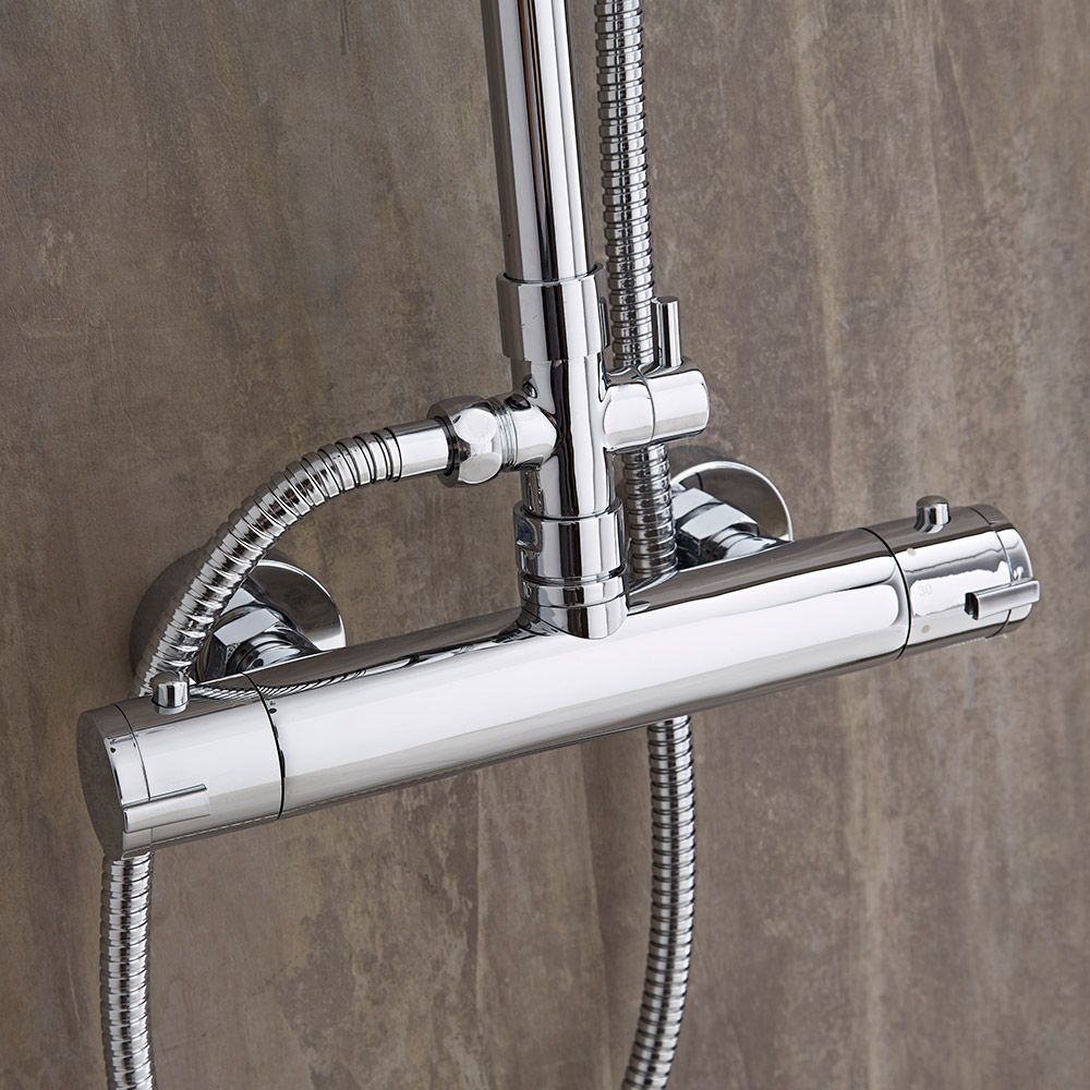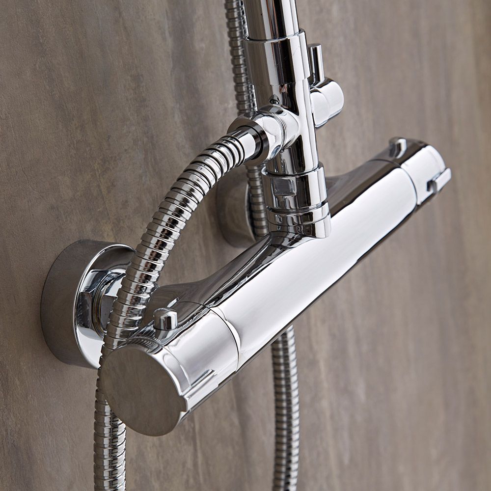 Give your bathroom an upgrade with the Milano Select thermostatic mixer shower, complete with telescopic riser rail, bar valve, round shower head and hand shower.
