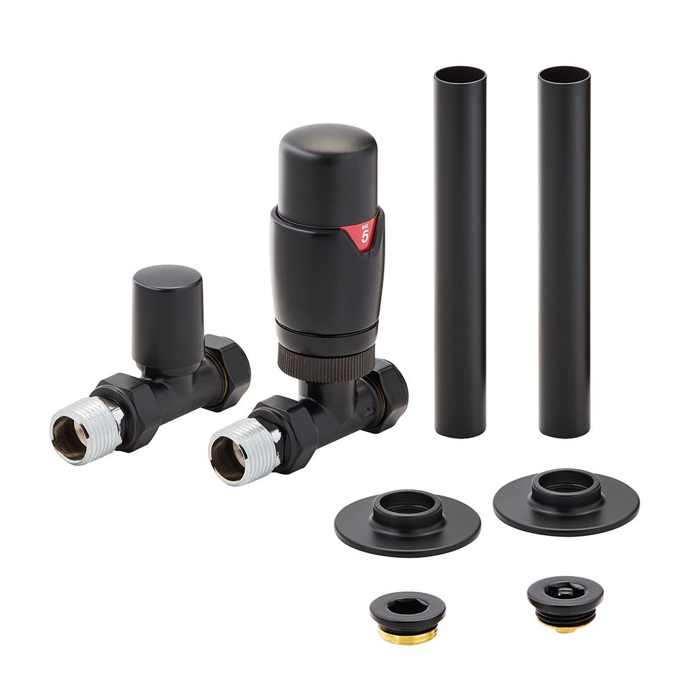 Milano - Thermostatic Straight Radiator Valve and Pipe Sleeve Set - Choice of Finish