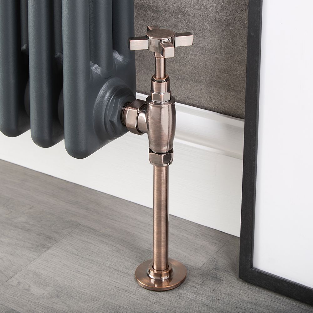 The brushed bronze pipe connectors allow for a neat connection between the inlet of the radiator valve and the floor. The bronze finish creates a coordinated look with the valves. The pipes have an exposed brass tip, allowing for soldering to your radiator’s pipework.