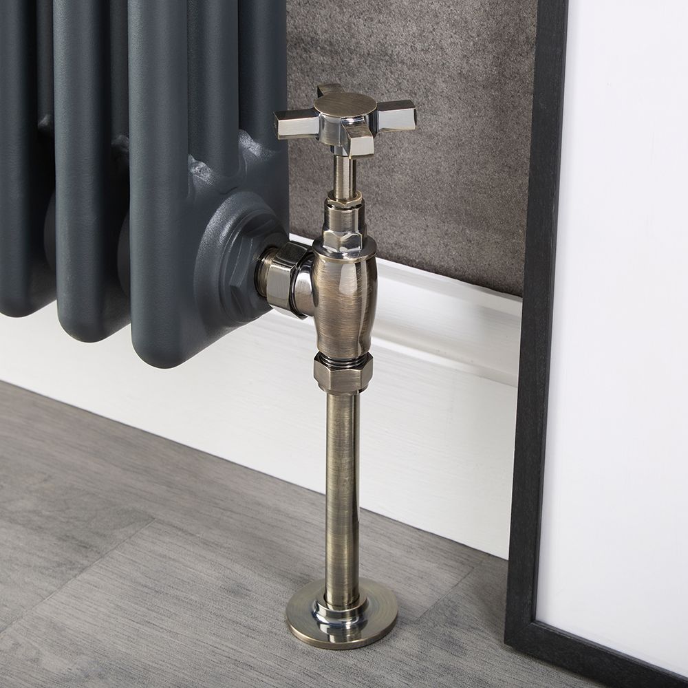 The brushed brass pipe connectors allow for a neat connection between the inlet of the radiator valve and the floor. The dark brushed brass finish creates a coordinated look with the radiator valves. The pipes have an exposed brass tip, allowing for soldering to your radiator’s pipework.