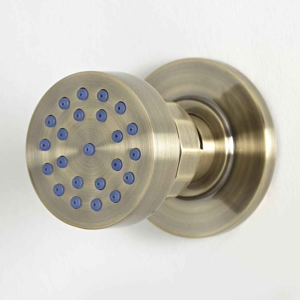 Enhance your traditional bathroom and create a spa-like showering experience with the Milano brushed gold round body jet.