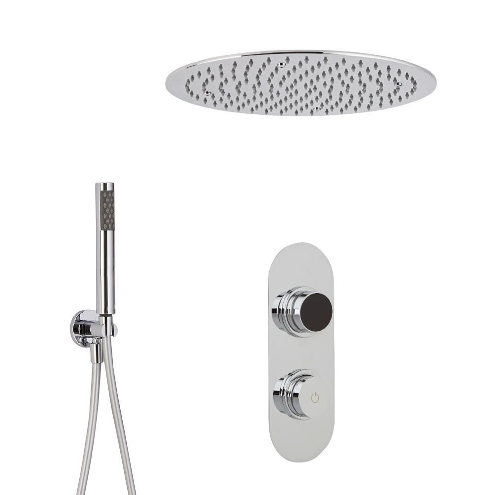 Enjoy a refreshing spa-like shower with the Milano Vis digital thermostatic mixer shower, complete with round recessed rain shower head and hand shower kit.
