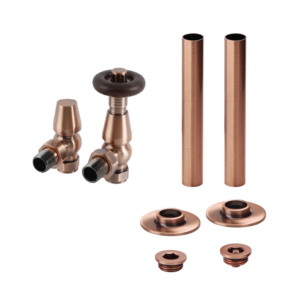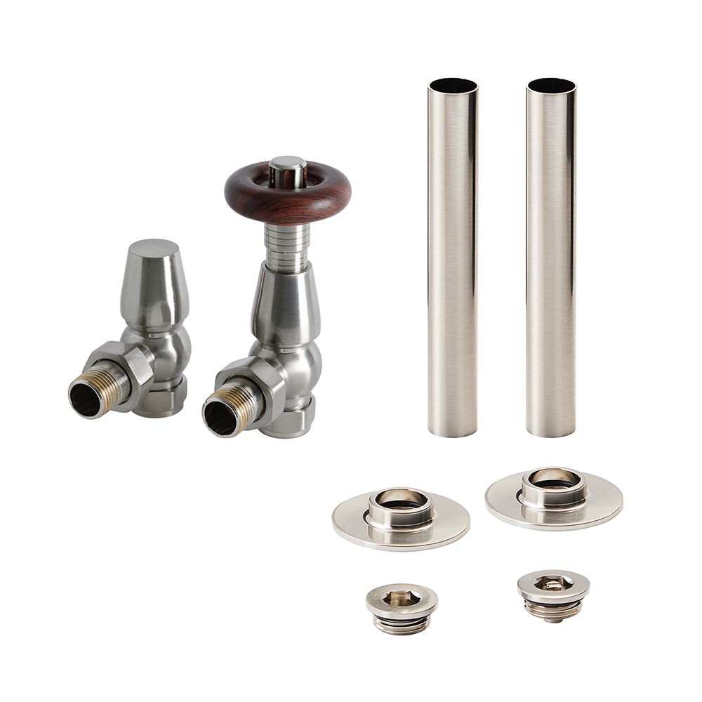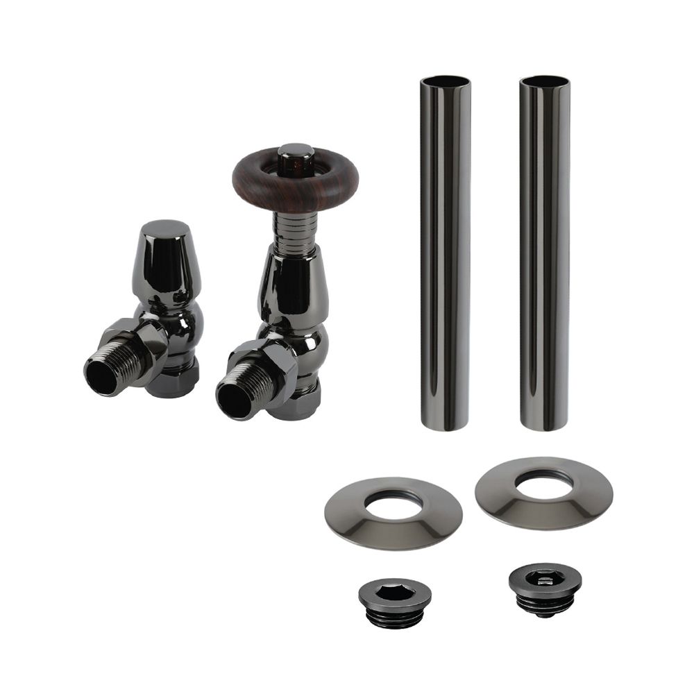 Further elevate your traditional style radiator or heated towel rail and create a neat finish with the Milano Windsor thermostatic angled radiator valve and pipe sleeve set