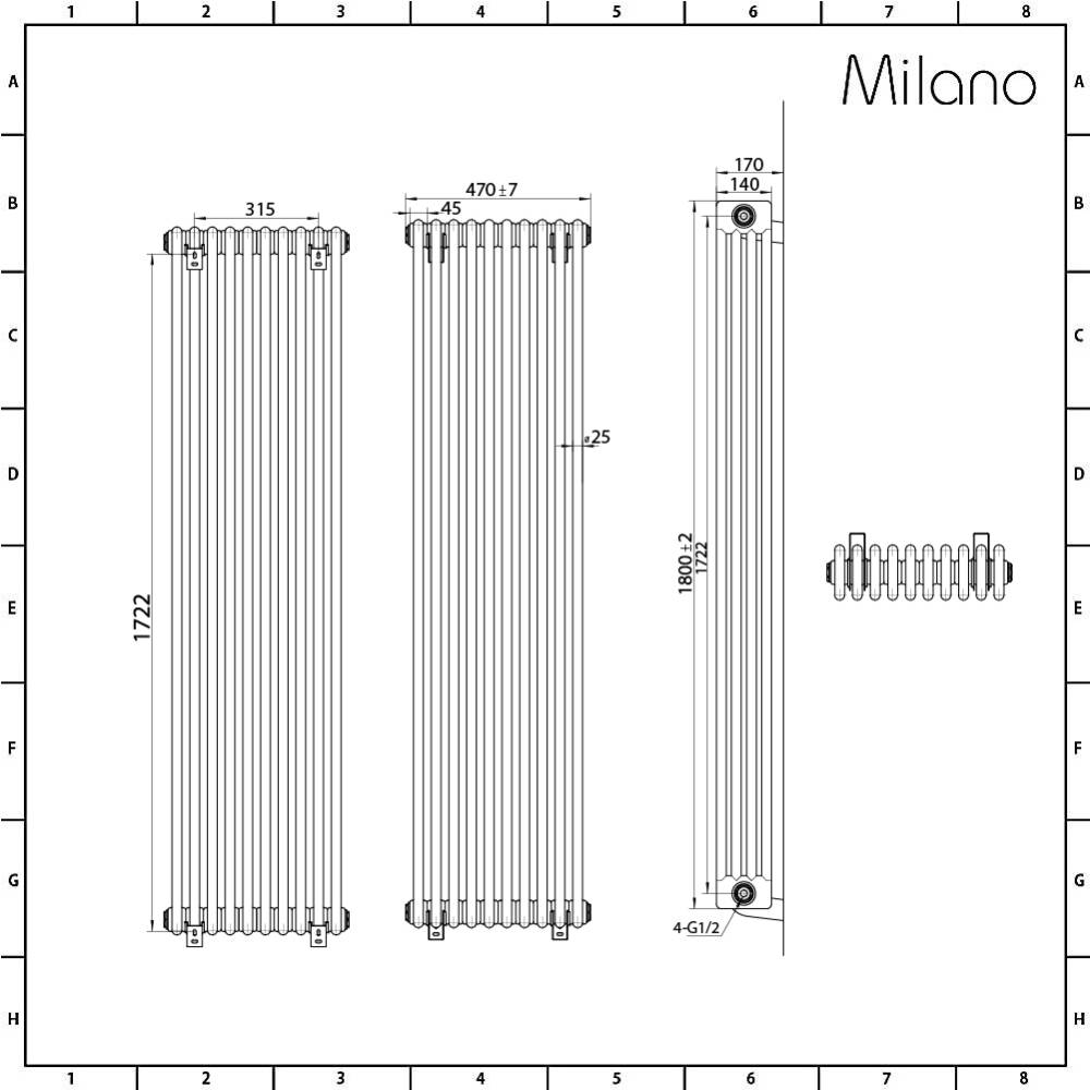 Milano Windsor - White Vertical Traditional Column Radiator - 1800mm x 470mm (Four Column)