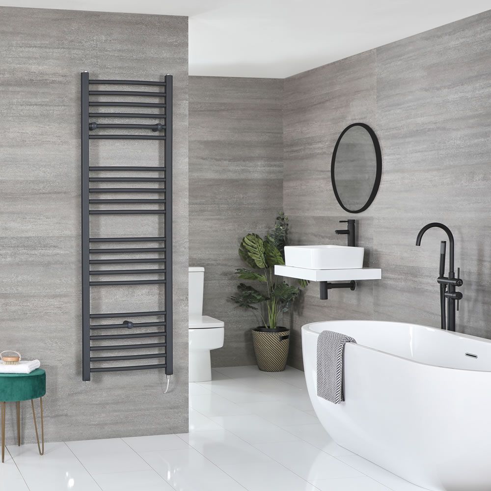 Milano x ECOSO Artle Electric - Anthracite Straight Heated Towel Rail - Choice of Size and Heating Element