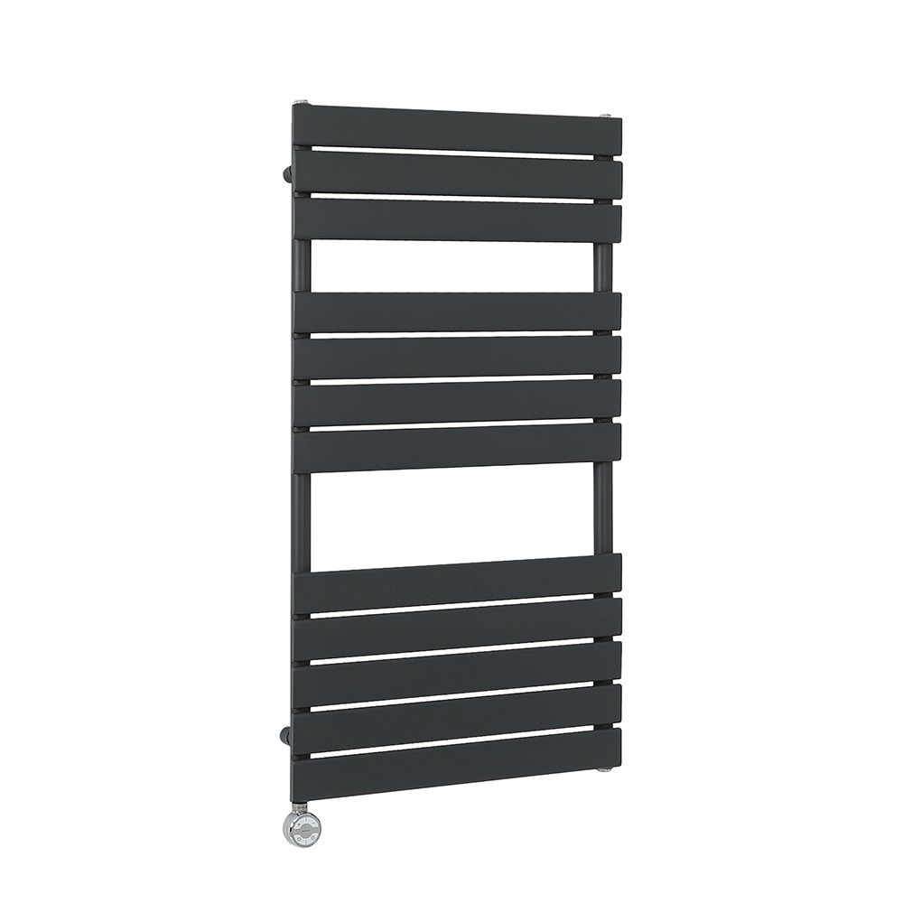 Bringing sumptuous warmth to your towels, this electric heated towel rail will enhance both the look and functionality of your bathroom. It has sleek flat panels in a resilient anthracite powder coated finish and ample towel hanging space.