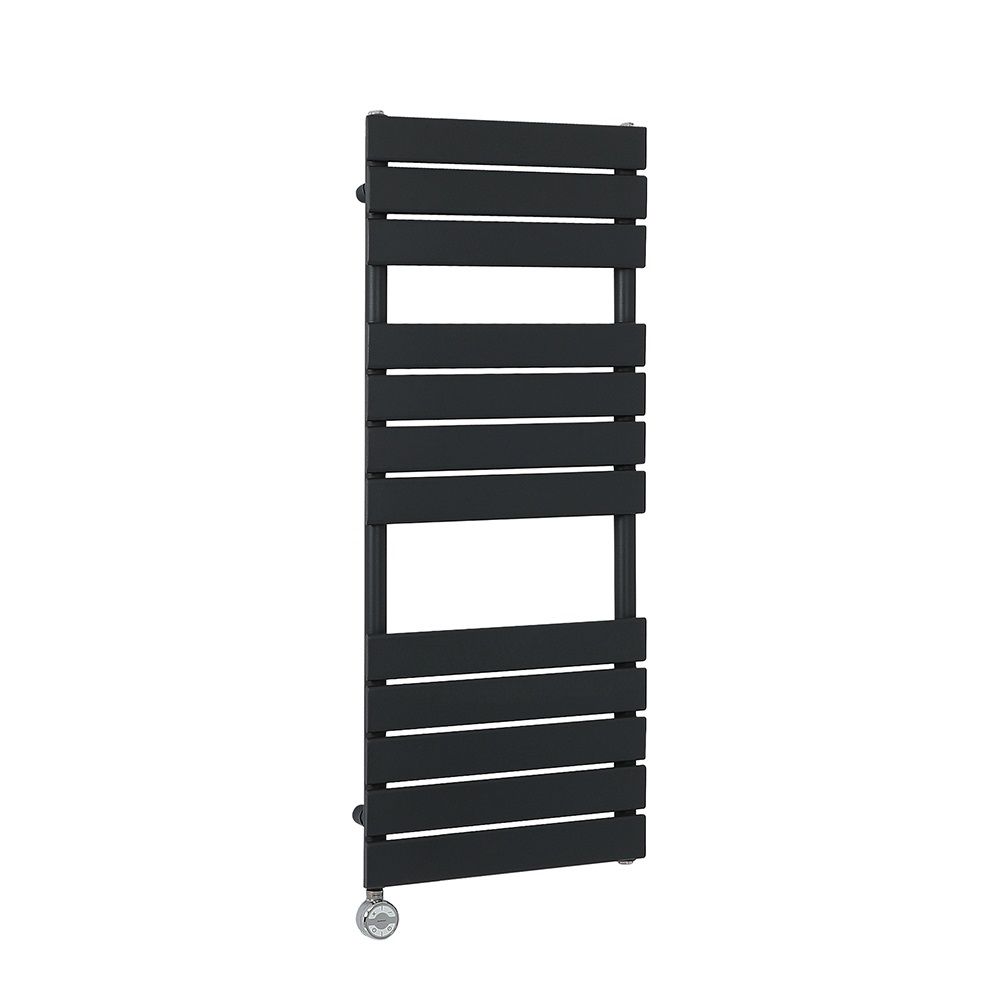 Milano x ECOSO Lustro Electric - Black Flat Panel Designer Heated Towel Rail - 1200mm x 450mm - with Thermostatic Wi-Fi Heating Element