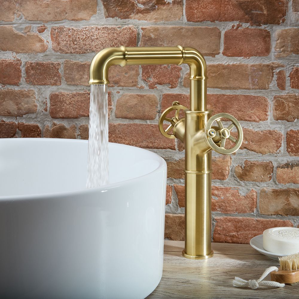 Made from solid brass for guaranteed durability, this tall basin tap blends Victorian elegance with bold industrial elements. It features a hard-wearing brushed brass finish and stylish circular handles, which provide effortless control. The high rise design of this bathroom sink tap makes it ideal for pairing with one of our countertop basins for an eye-catching feature.