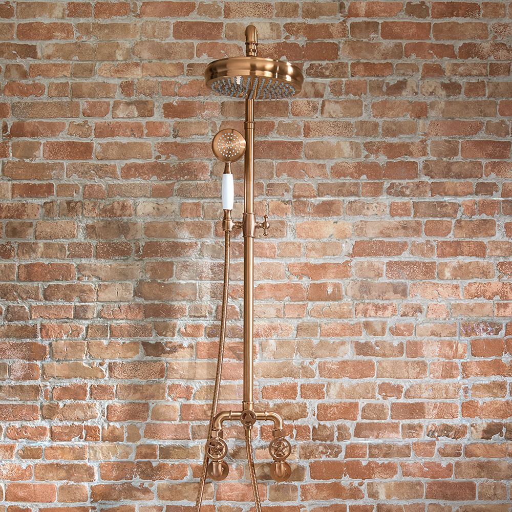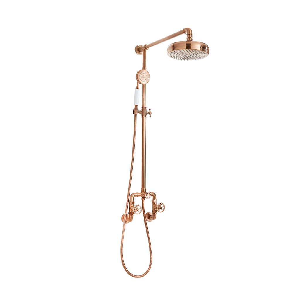 Milano Zandra - Industrial Style Manual Exposed Shower Valve with Round Shower Head and Hand shower - Brushed Copper