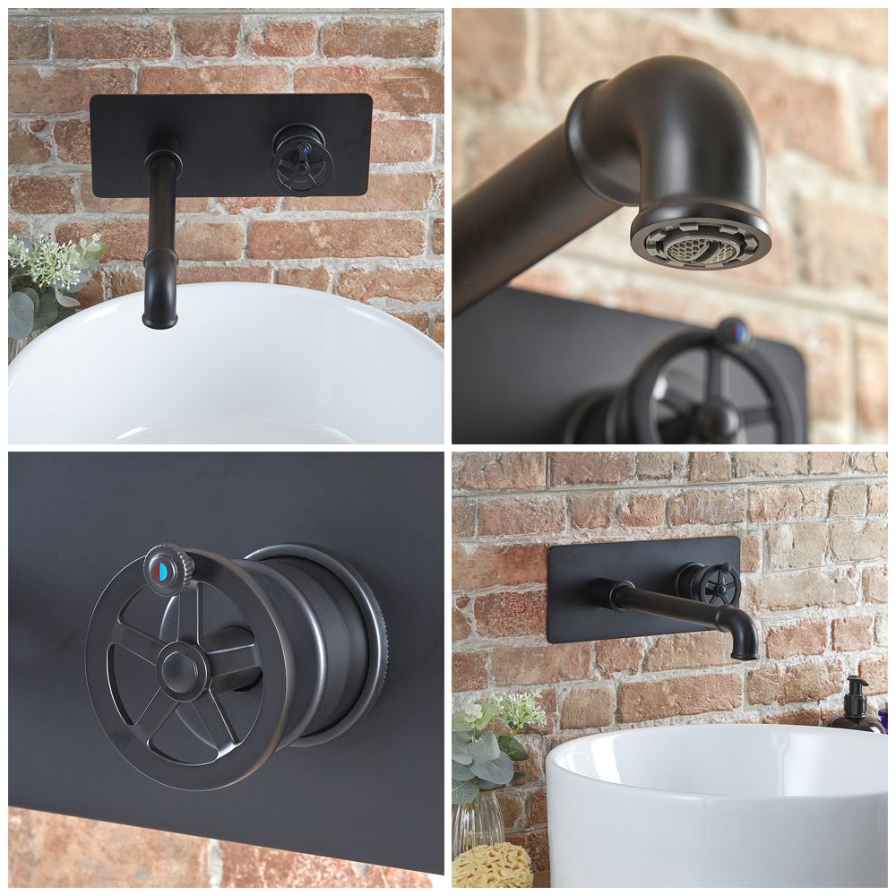 Milano Zandra - Industrial Style Wall Mounted Basin Mixer Tap - Black