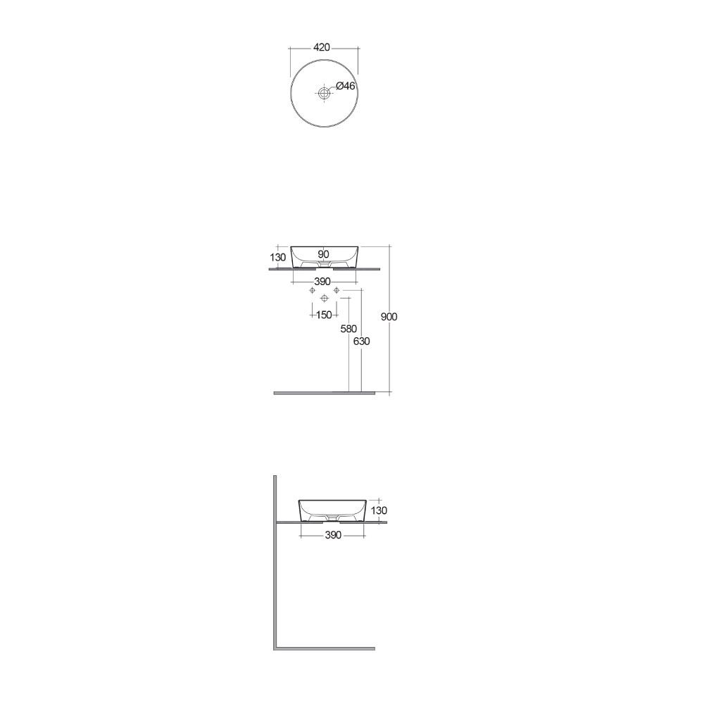 The countertop sink does not have any tap-holes, so why not complete the look with one of our wall-mounted or high-rise basin taps.