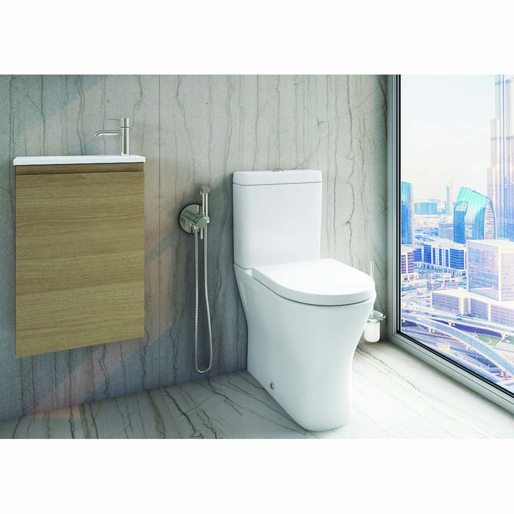 Give your bathroom a stylish and contemporary upgrade with the RAK Resort maxi close coupled rimless toilet, complete with wrap over soft close seat.